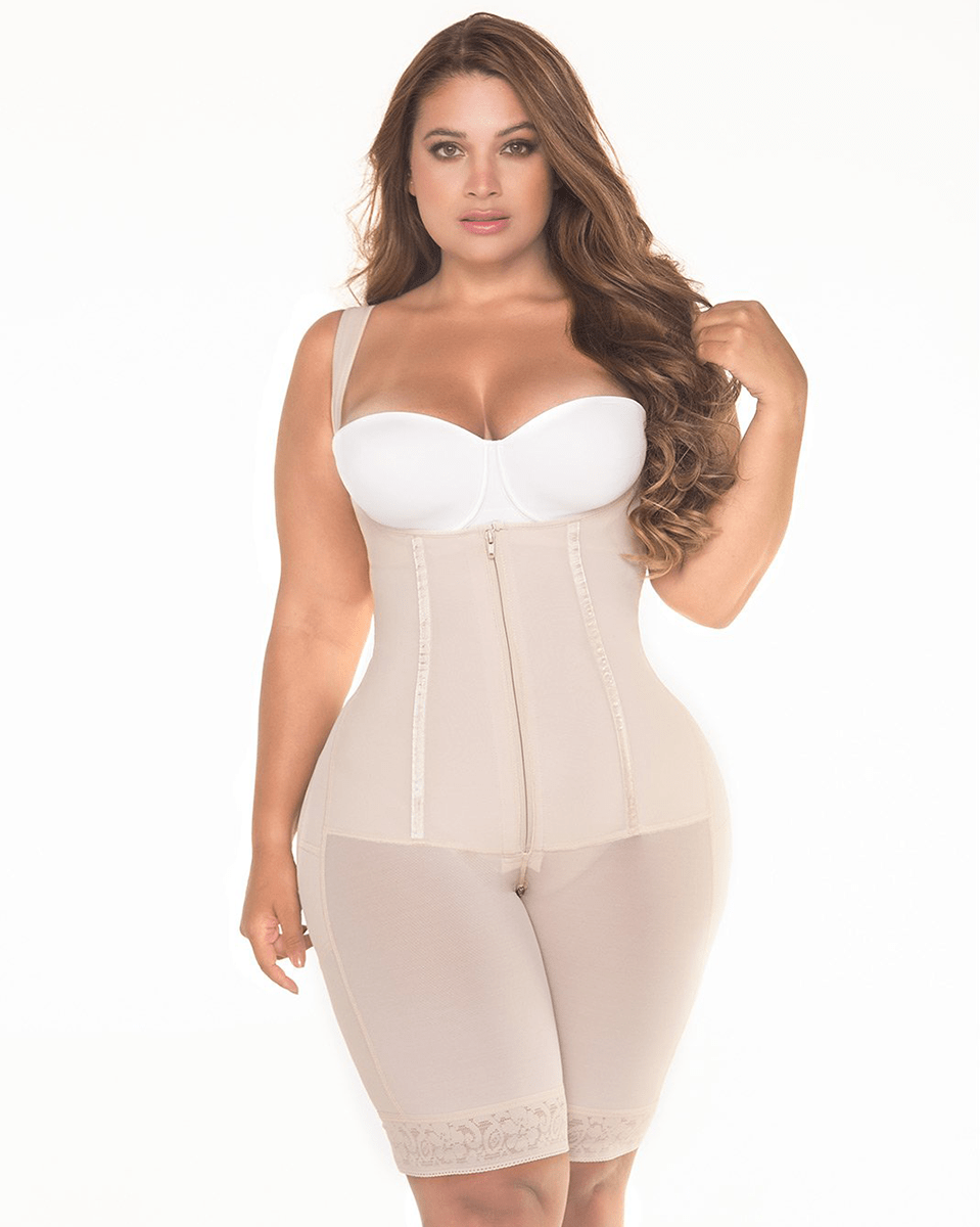 This shaping garment, designed as a hip hugger and without a bra, features a lateral zipper for a comfortable and secure fit on your body, making it one of the most comfortable girdles available. It helps you achieve the desired silhouette you've always wanted. The outer layer crafted from Powernet offers the compression level you need without causing any discomfort, while the inner lining made of lycra provides a pleasant and soft sensation against your skin. This post-surgery compression garment boasts a well-thought-out design that complements your favorite outfits beautifully.