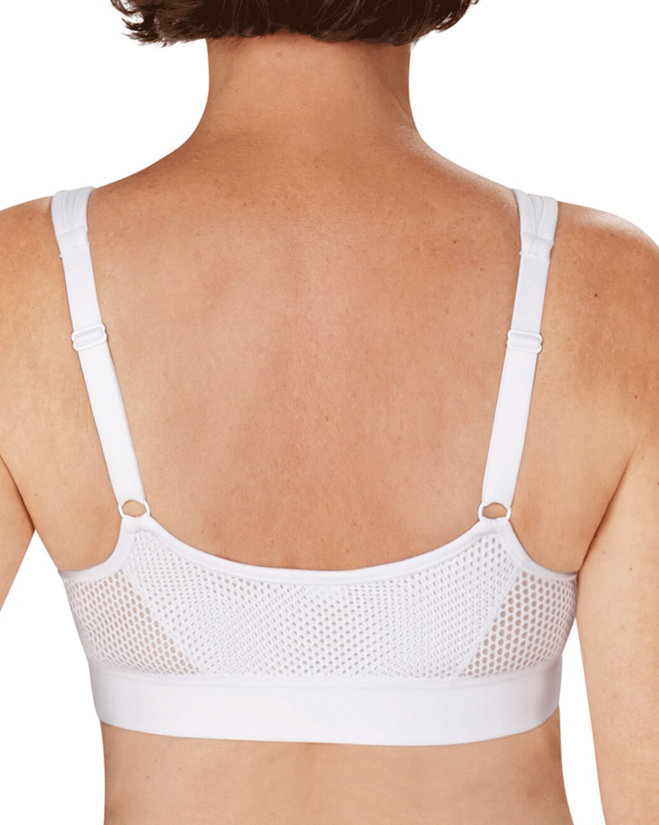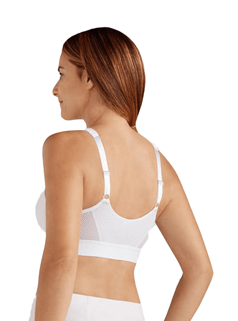 The Ester bra has a modern and athletic design that does not look medical; designed with breathable synthetic fabrics and mesh on the sides and back to help with moisture evaporation.