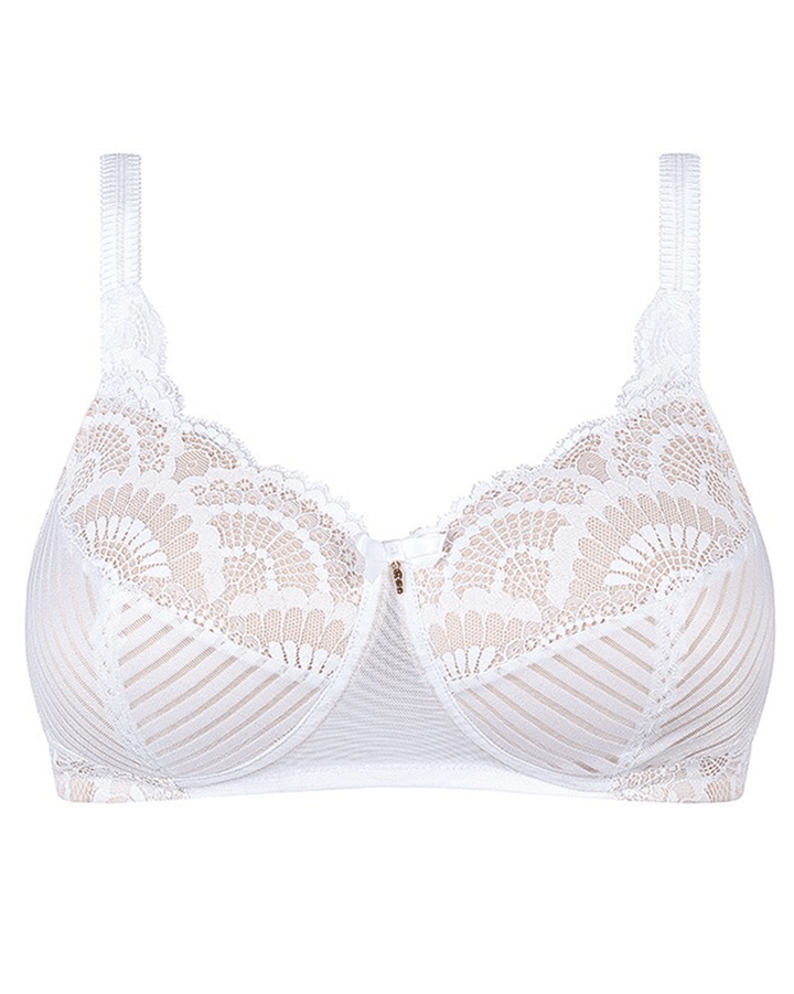 Luxurious lace with a fan optic makes our Karolina Padded Non-Wired Bra a standout. Inspired by the exquisite style of old Hollywood, our Karolina non-wired bra turns heads. Its lightly padded cups are truly supportive and create a beautiful shape, following your curves. Like all Amoena pocketed bras, the Karolina padded wire-free can hold your breast forms or shapers in place securely. We've added exquisite lace at the cups, and decorative straps with gold rings and adjusters to this supportive yet very light bra.