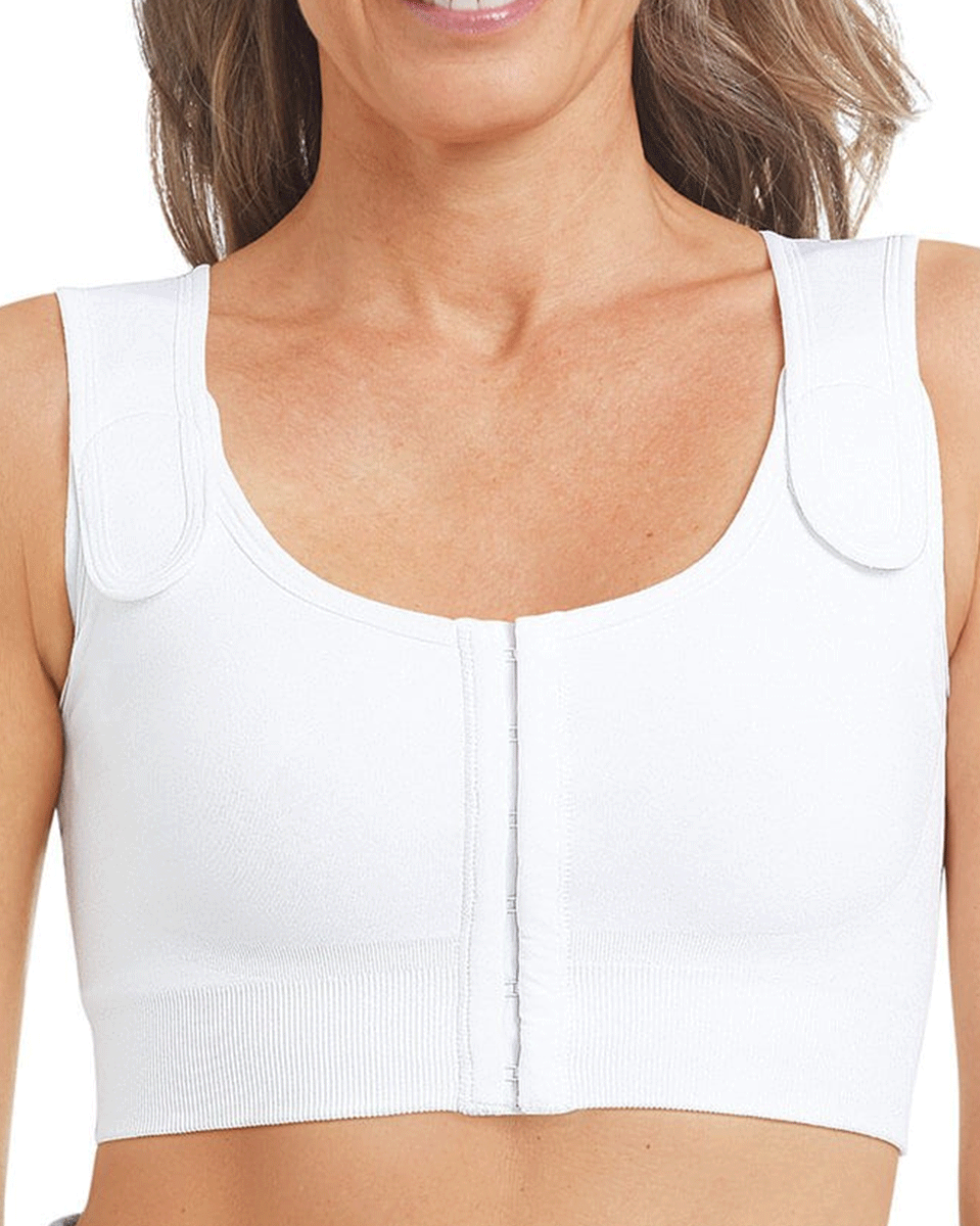 - Pre-formed and flexible seamless cups ensure optimal stabilization of the post-surgical breast area with even, all-over pressure (no fixation ring around the cup)