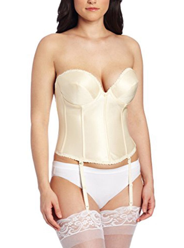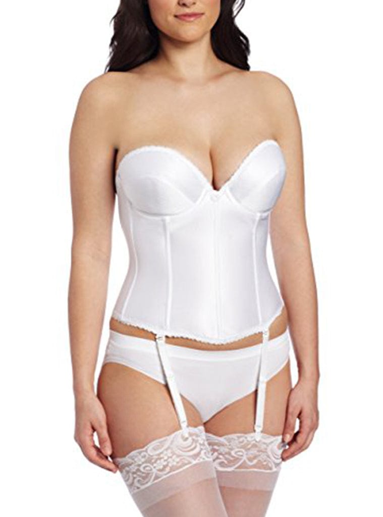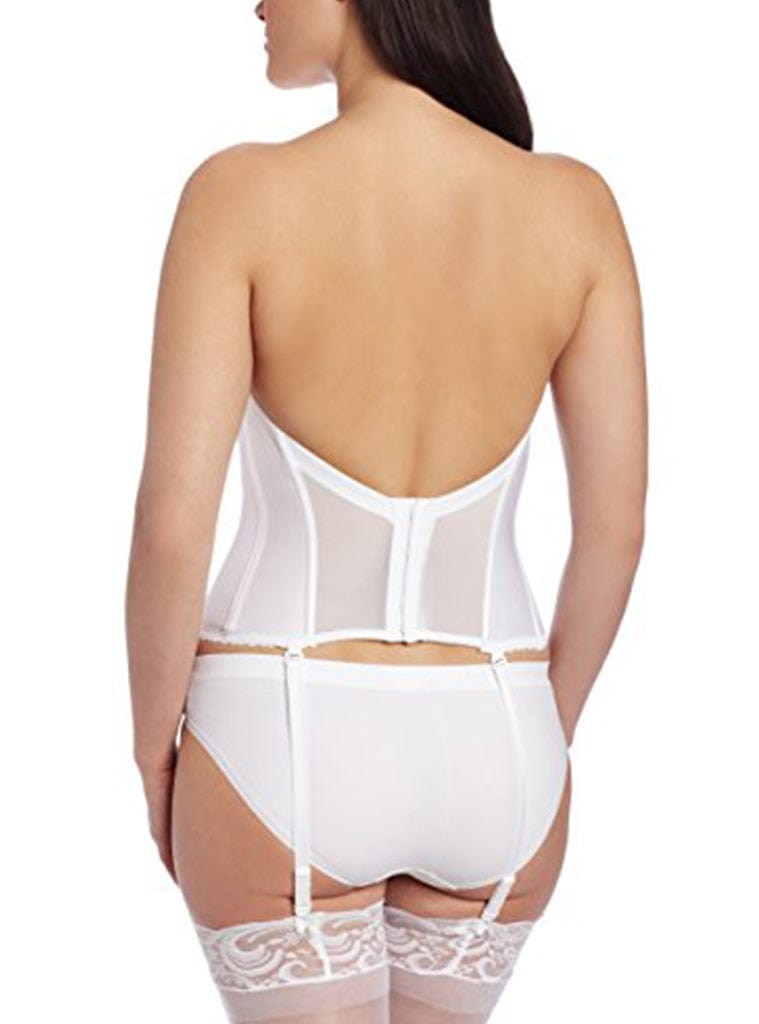 Perfect shaping with comfort and support; this deep plunge, Low back brasselette is designed for the nudest necklines And the barest backs. Double knit nylon cups lightly lined With fiberfill and strategically placed front boning that slim the waist while curving the hips create a sleek and smooth hourglass figure under the most revealing fashions (Adjustable and removable garters included).