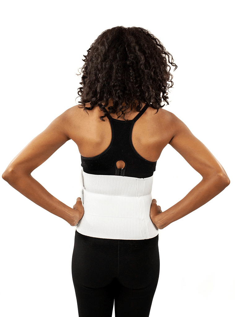 Abdominal Binder features Velcro closure that engages anywhere on the stretch material to provide precise control and even compression. Latex Free.