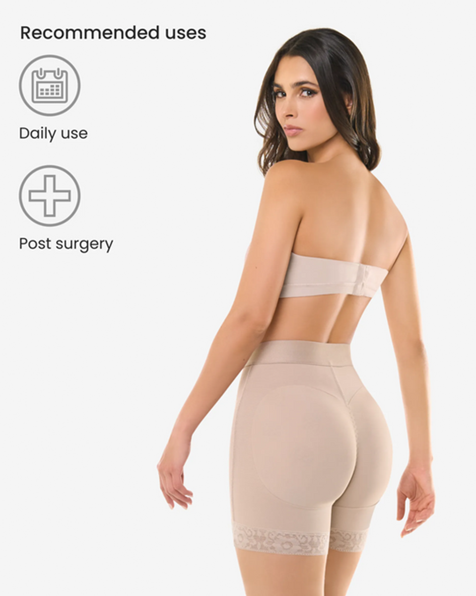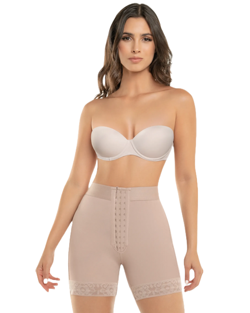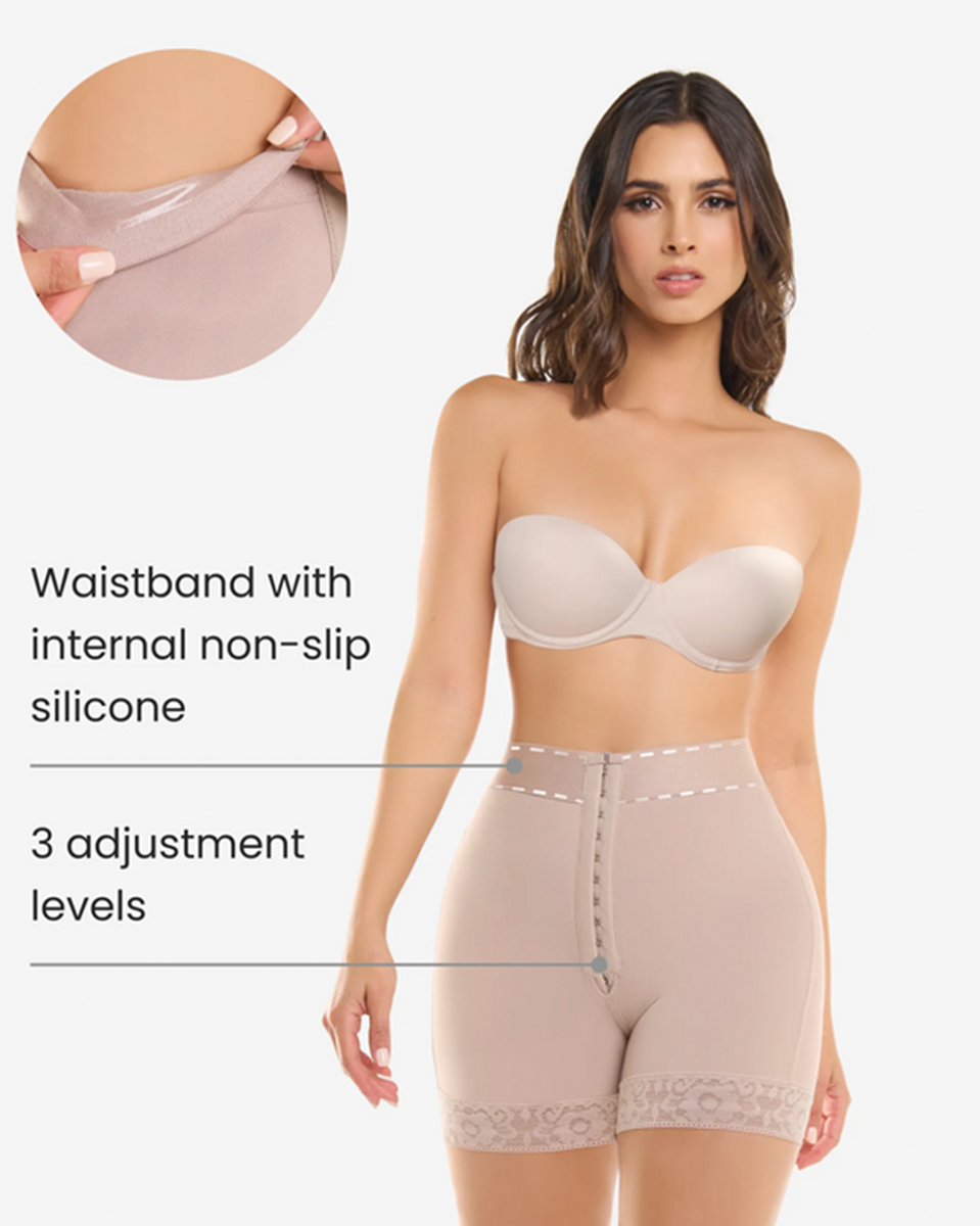 Introducing Style 255: Unleash the power of compression with our Hook Closure High Compression Shorts. Engineered for maximum support and comfort, these shorts are designed to sculpt and shape your midsection effortlessly. The gradual abdominal compression ensures a smooth and streamlined silhouette, while the lace with internal silicone ensures a secure fit all day long. With three hook closures providing adjustable compression levels, you can customize your comfort with ease. Crafted from smooth and flexible fabric, these shorts move with your body, providing unparalleled freedom of movement. Complete with a waistband featuring internal non-slip silicone, Style 255 offers ultimate confidence and control.
