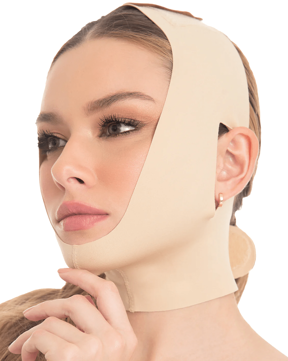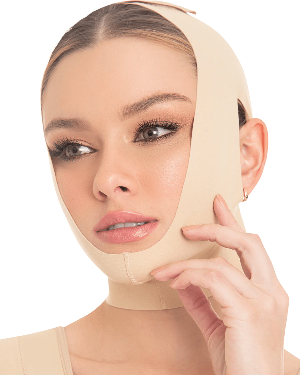 This garment exerts the right compression level to improve your facial procedure results. This facial compression garment is breathable, made of high-quality fabrics, and works perfectly as support. It comes in beige and different sizes.