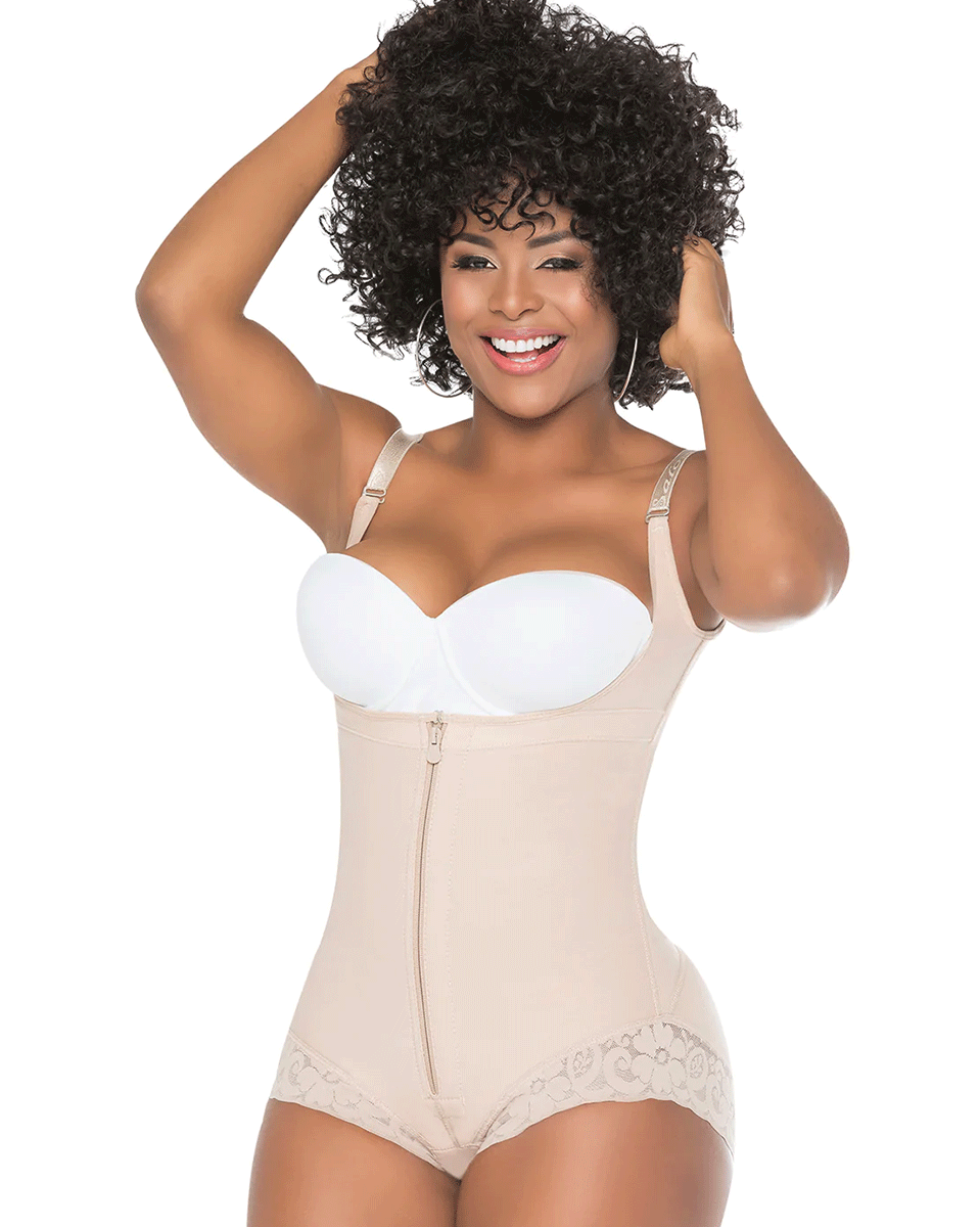 These Salome Shapewear 0413 High Back Strap Shaping Body with Lace   with compression that provide greater control in the waist and the entire back.  They compress the area under the armpits and allow to mold the rolls.