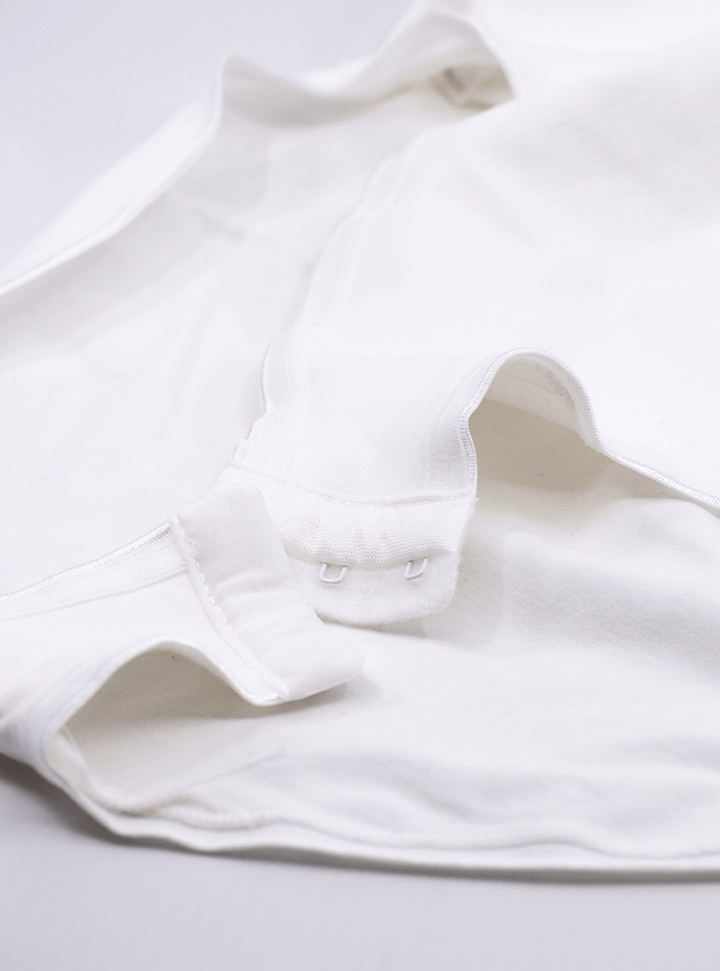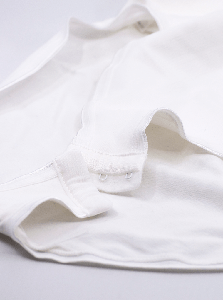 Shaping bodysuit in microfiber with push up effect. The innovative elastic construction without seams guarantees a shaping and modeling effect on the whole body, redefining the silhouette. The bust area, thanks to the cross-hatch knitting design and bands with different elasticity, guarantees a considerable push up effect, supporting in a comfortable, discreet and natural way. Easy to wear thanks to the button-fastening and invisible underneath any piece of clothing. Hygienic and antibacterial gusset.
