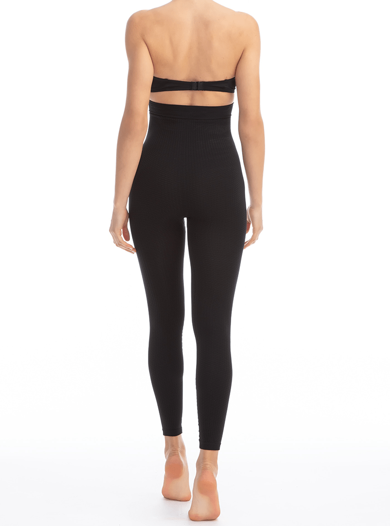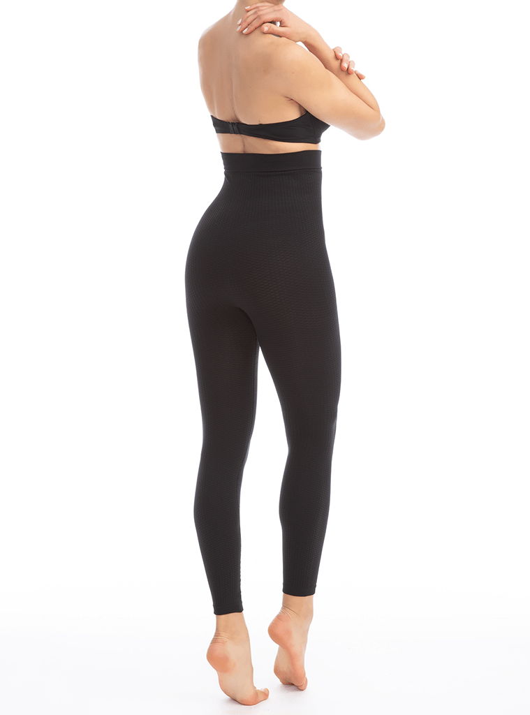 High waist slimming leggings in microfiber, with massaging effect due to the texture of the product with coarse and smooth areas which help fighting the imperfections caused by cellulite, thanks to the continuous body movement. It is manufactured with a revolutionary breathable cross-hatch knitting design with an hygienic and antibacterial gusset.