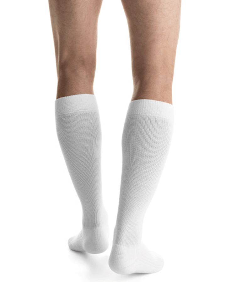 JOBST® ActiveWear is a cushioned compression sock with excellent moisture management and extraordinary softness. The comfortable JOBST® ActiveWear is your ideal compression sock for any activity. Dri-Release yarns help keep feet dry. All day comfort knee band. Cushioned foot and seamless toe help protect feet from shoe seams.