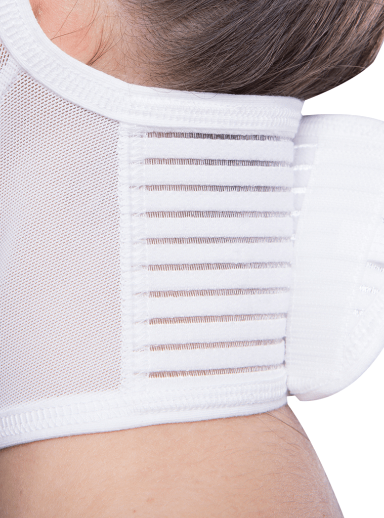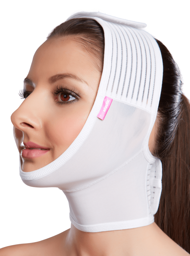 - FM extra compression facemask covers areas from the top of the head down to the bottom of the neck; two Velcro fasteners located at the top of the head and at the nape allow the adjustment of compression in individual parts as needed.