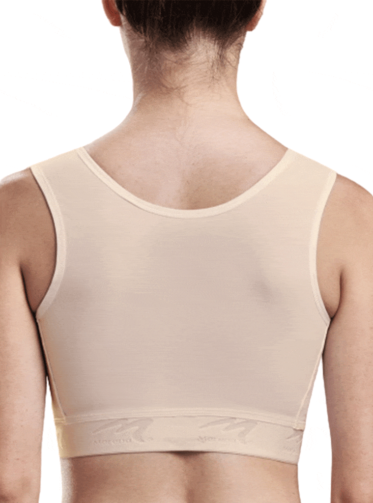 Our new FlexFit™ High-Coverage is designed for comfortable, adjustable support following breast reduction, augmentation, and other aesthetic procedures. This bra features padded hook-&-eye shoulder closures and a microfiber 3-row hook-&-eye front closure for full adjustability. Engineered with our FlexFit™ cups that integrates two cup sizes into one bra and accommodates breast volume variation due to swelling. Additional features include extended length to avoid the inframammary fold, with a soft, elastic band. Our patented TriFlex™ fabric has superior stretch to prevent binding, provides moisture wicking and cooling, and active silver antimicrobial protection. Machine washable.