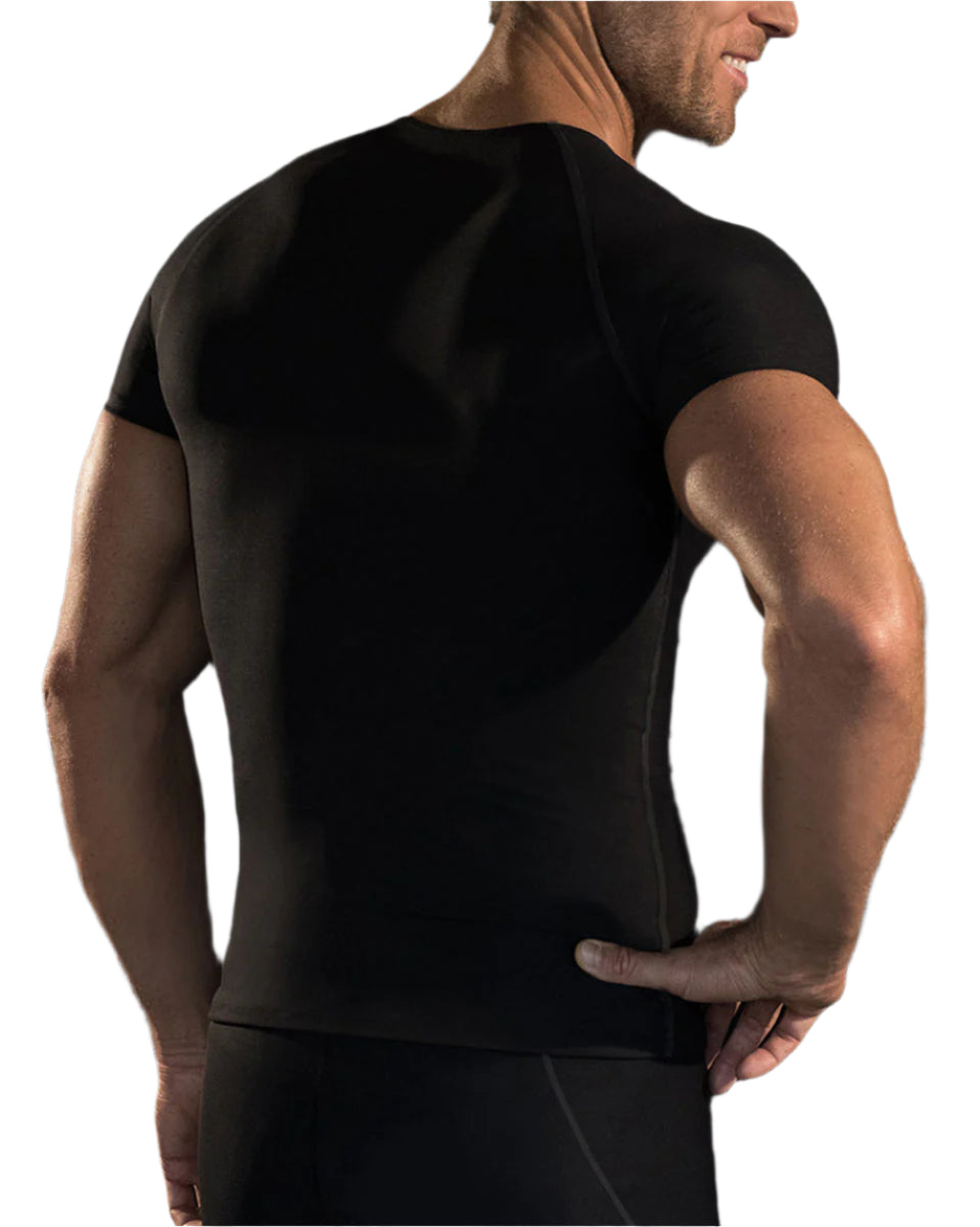 This vest with short sleeves is multifunctional. It is a go-to garment for anyone seeking recovery support, improved posture, and the benefits of shapewear, including men's shapewear purposes.