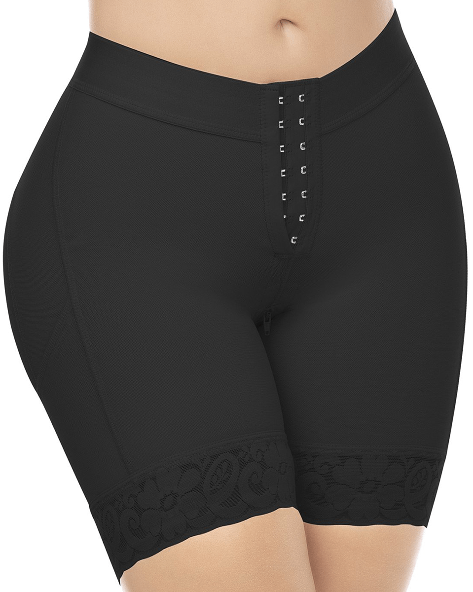 • Design: Mid-thigh length, zipper crotch, silicone lace hemline, 2-level hook-and-eye closure.