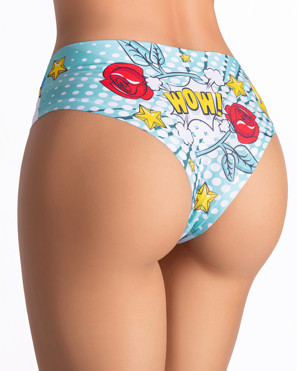 Flawless cut and flat seams create a perfect fit, and thanks to that our underwear feels like a second skin. Our panties are universal for any situations. They stretch in all directions for total freedom of movement. Clear print and color quality are ensured by professional equipment and experts. Bright and juicy colors of our prints: Are applied with quality safe dyes; Don't fade or wash out; Don't leave traces on skin or clothes; Don't cause irritation or allergy.