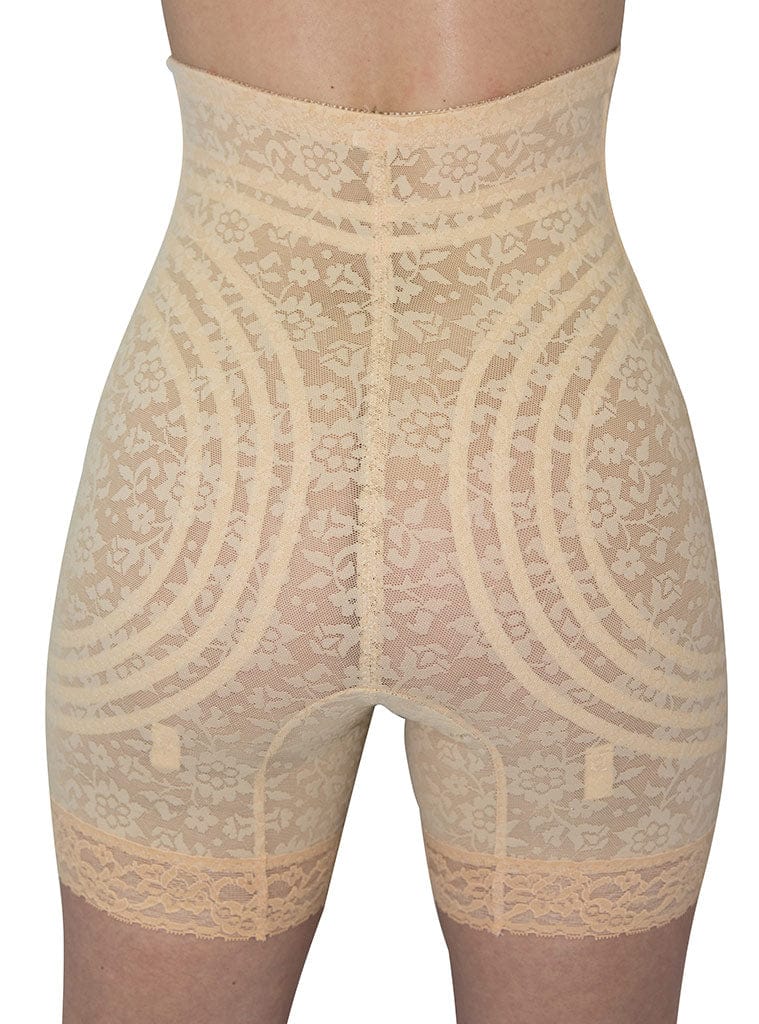 I purchased this shaper in beige 4xl I'm 5ft5 220 . The first time I put it on was a real struggle but after one hand wash it seemed to fit much better. I have been wearing it regularly the past 2 months and just bought my second one in black. It does not roll down on my waist the legs don't roll up like so many that I have had before. I'm convinced it takes 15lbs off of me. I can wear it from early morning to evening. Very well made and has a classic look to it. My husband has commented on several occasions that the lace in the panel and on the legs gives it a more appealing look than all of my other shapers I wear. And most important I love how I look in it. I highly recommend this panty girdle its a game changer