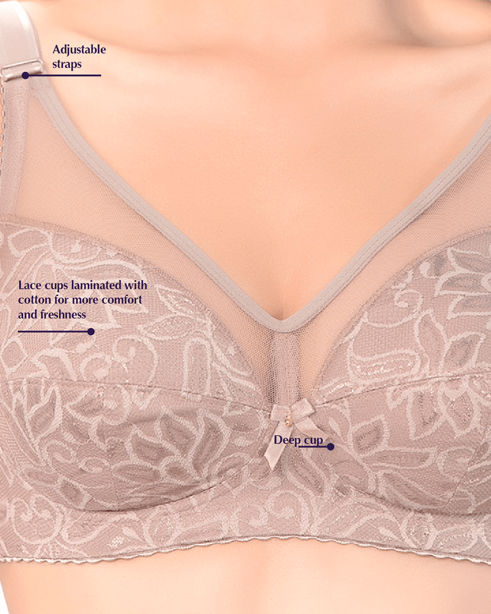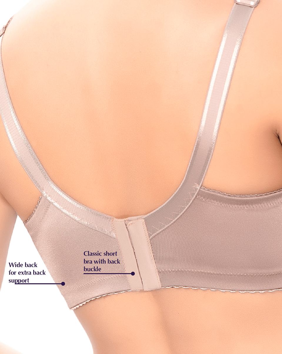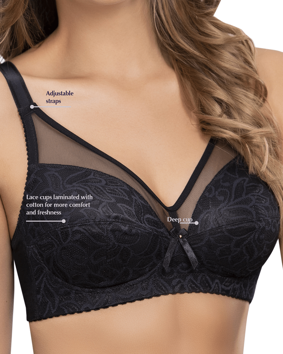 Enjoy a beautifully shaped bust. Structured cups provide complete bust coverage. Double layered cups with delicate lace overlay. Wide back wings made of a smooth fabric that controls bulges for an impeccable shape. The neckline has buttonhole that shows your skin for added style and a daring touch. No wires about it, but with special cuts & seams that replace underwire to offer excellent support and comfort. Soft, wide straps provide great support with complete comfort. Perfect for those with sensitive skin.