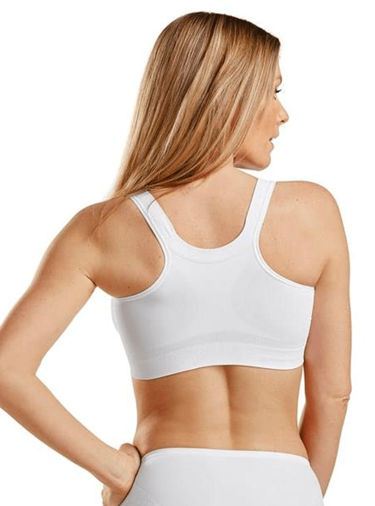 After my reconstruction surgery my doctor gave me this bra, I am so thankful to find it here as I needed a second. Pretty bra, fits well, and just enough compression. The adjustable shoulder straps make it easy, and good fit, as well as the double row of eye hooks makes it super easy to adjust perfectly.